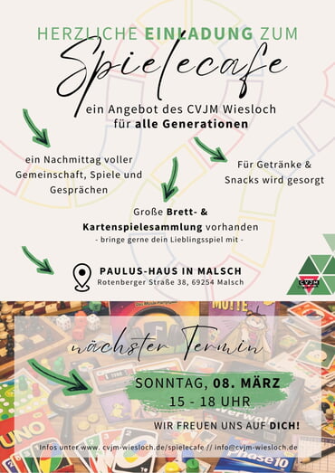 Spielen verbindet Menschen unabhängig von Alter, Herkunft oder Erfahrung. Mit dem Spielecafe möchten wir einen Raum schaffen, in dem Gemeinschaft entsteht, Begegnungen möglich werden und Freude am gemeinsamen Spielen erlebt werden kann.